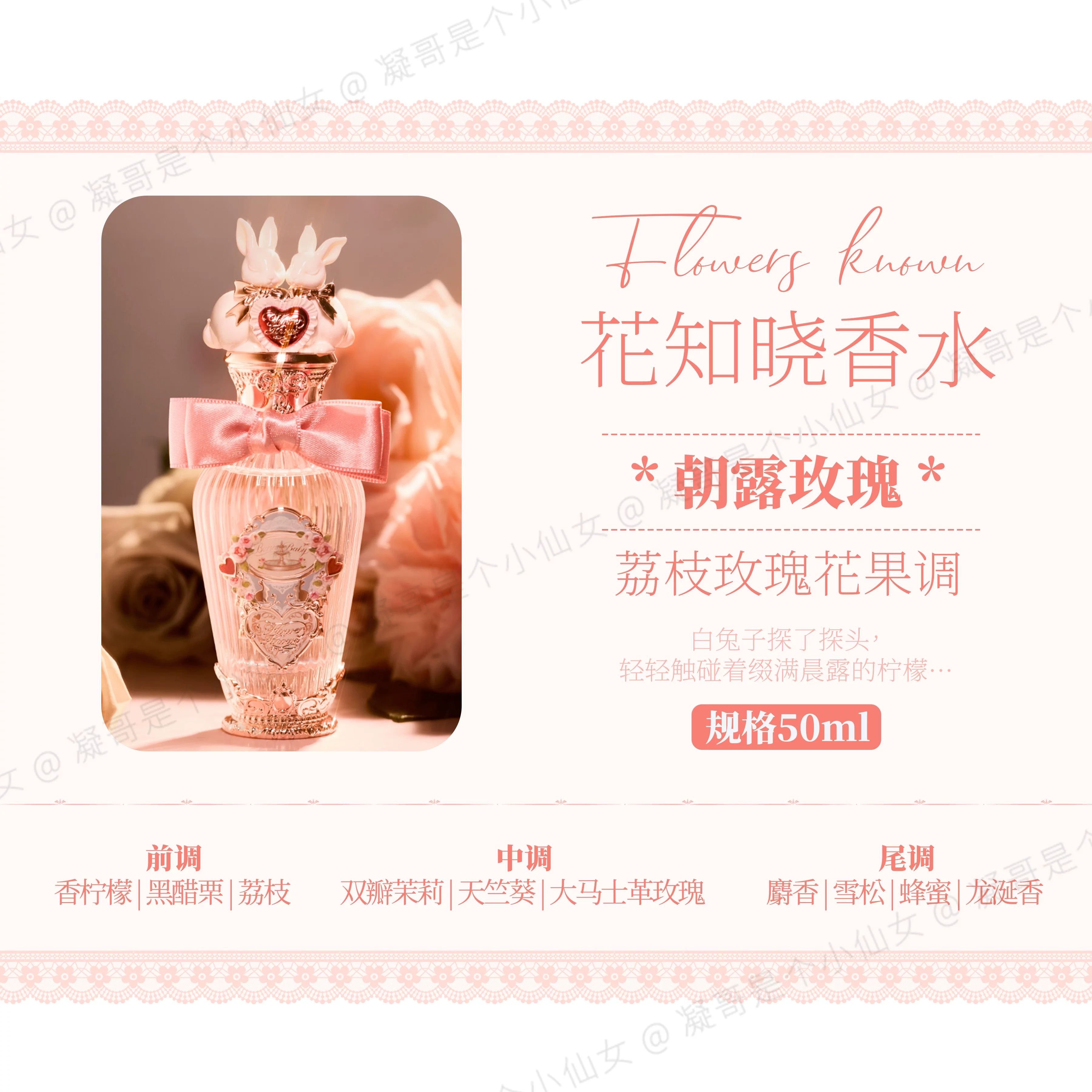 (凝)清甜花果香!花知曉香水 邦尼花園系列 雪花邦尼 朝露玫瑰 持久留香