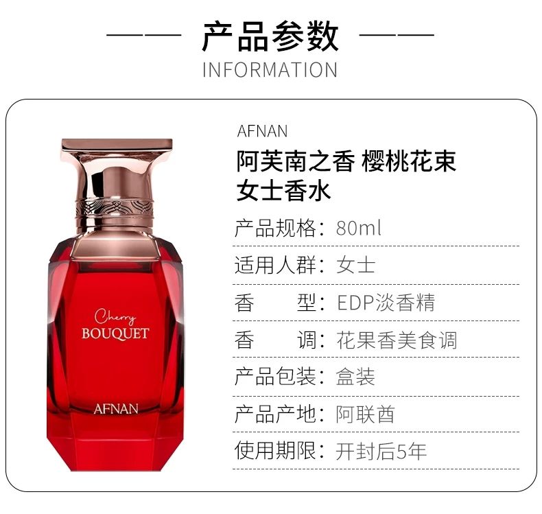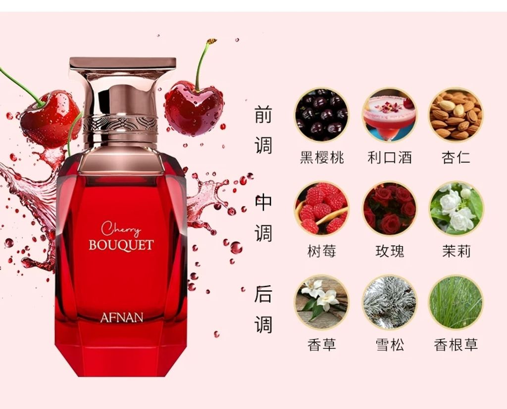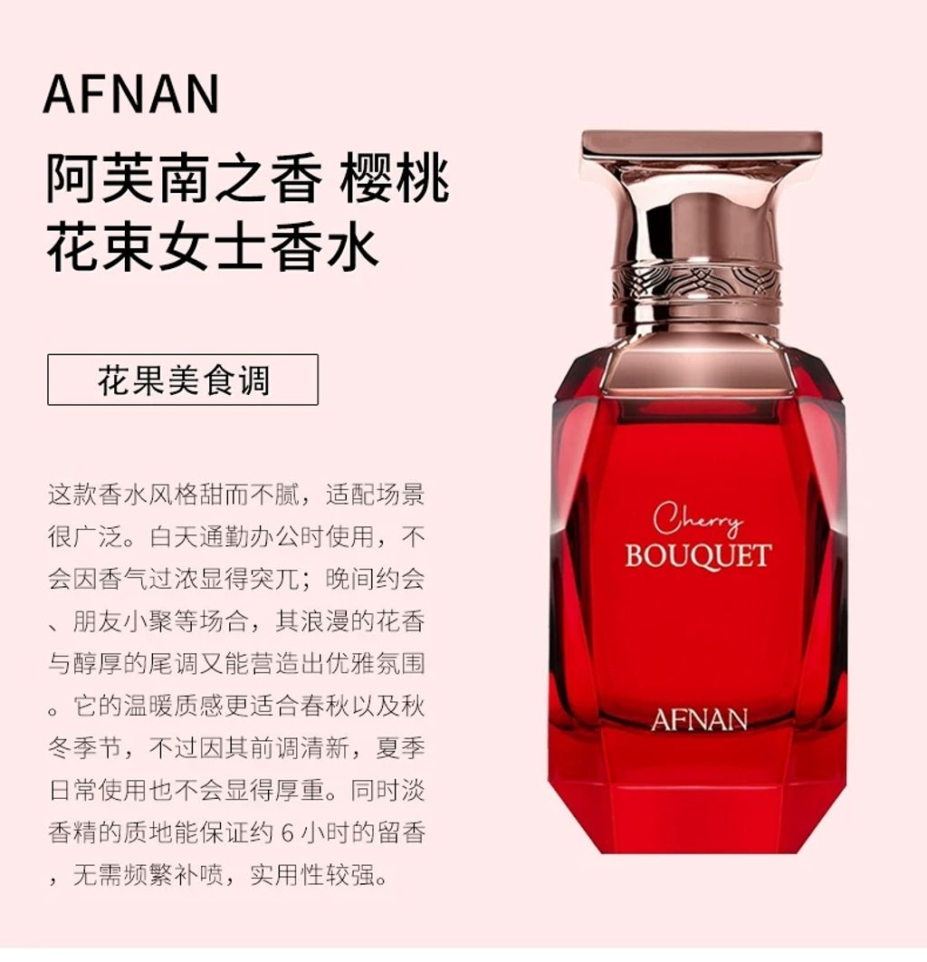 Afnan阿芙南 櫻桃花束女士濃香水EDP 80ML 花香果香調 持久留香