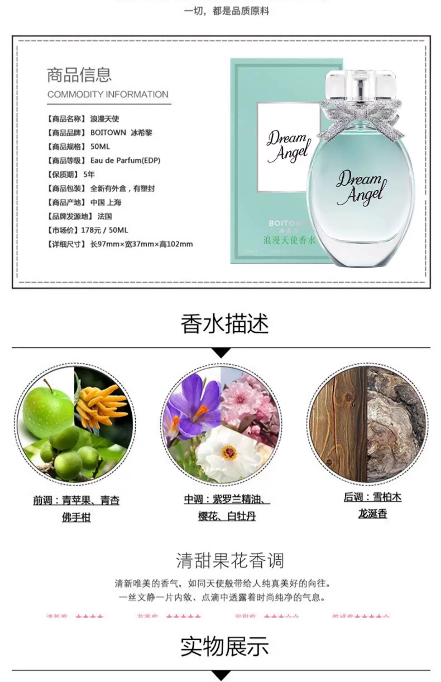 BOITOWN冰希黎浪漫天使香水花果香女士持久淡香
