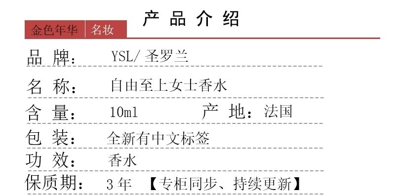 聖羅蘭自由至上女士香水中小樣10ml7.5ml 經典濃香型持久留香花香